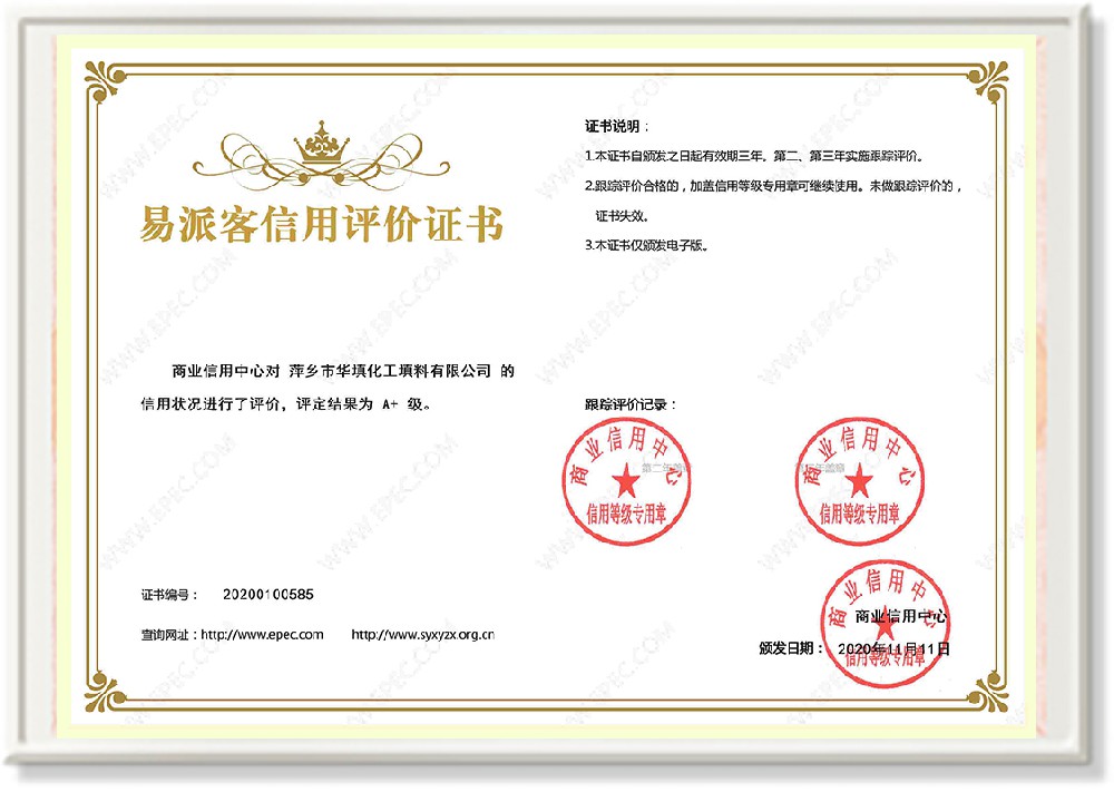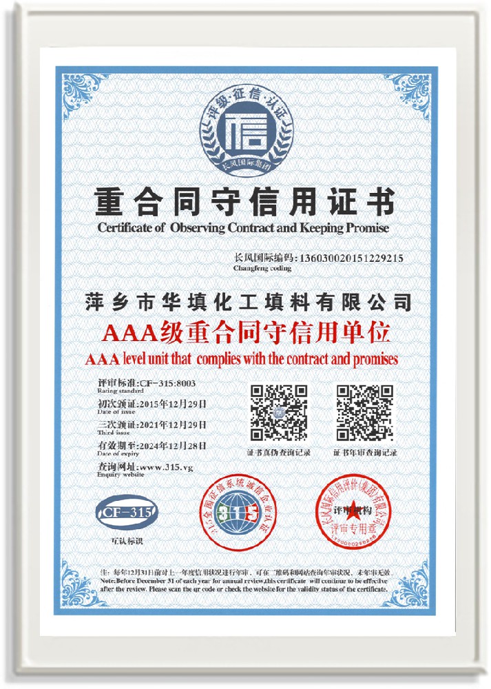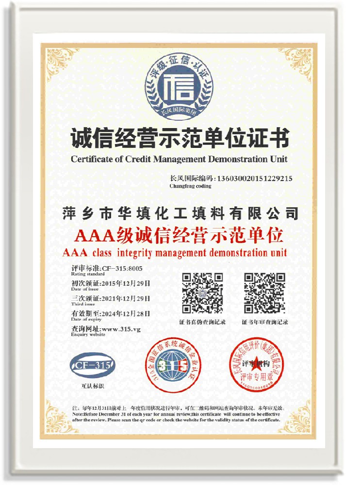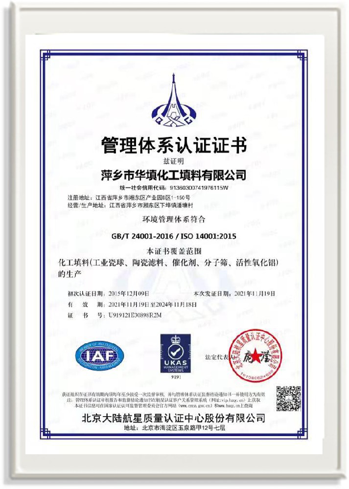 萍鄉(xiāng)市華填化工填料有限公司,位于320國道、109國道、浙贛鐵路、昌金高速公路貫穿其中,交通便利,是江西西部一顆燦爛明珠,創(chuàng)建于20世紀70年代初期,是中國石油天然氣股份有限公司“能源一號網(wǎng)”會員企業(yè)、中國石化物資采購電子商務網(wǎng)絡和中國海洋石油總公司采辦業(yè)務系統(tǒng)成員單位,是上海大學江西材料基因組工程產(chǎn)業(yè)研究院工業(yè)陶瓷產(chǎn)業(yè)創(chuàng)新聯(lián)盟基地,且通過ISO9001:2015質(zhì)量管理體系、ISO14001:2015環(huán)境管理體系、ISO45001:2018職業(yè)健康安全管理體系認證的化工填料生產(chǎn)企業(yè)。公司擁有陶瓷、塑料、金屬填料、催化劑、活性氧化鋁、分子篩等產(chǎn)品生產(chǎn)線,現(xiàn)有固定資產(chǎn)3616萬元,占地面積3.8萬平方米。公司具有悠久的生產(chǎn)歷史、雄厚的技術力量和先進的生產(chǎn)工藝設備,可生產(chǎn)工業(yè)瓷球(支撐劑)、陶瓷、金屬、塑料質(zhì)的規(guī)整、散堆化工填料及分子篩、催化劑、生化濾料、活性氧化鋁、石化助劑、活性炭、環(huán)保材料、耐火材料等系列的200多種規(guī)格型號產(chǎn)品。
